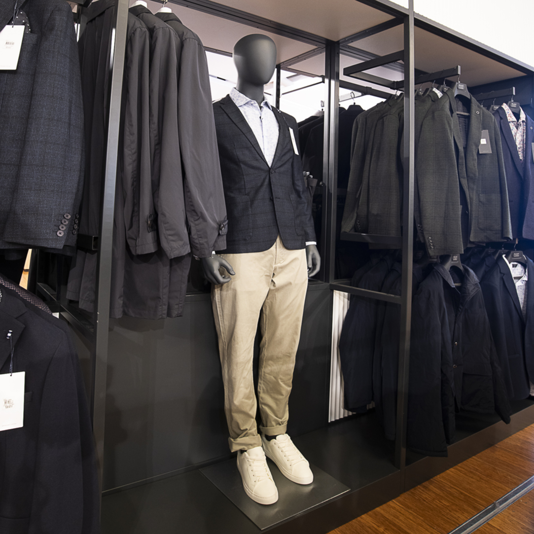 In collaboration with Dashing, the Dressed team produced twenty mannequins to add theatre and clear sightlines to the suit shop, including two bespoke poses for Van Heusen, modifying from the men's classic collection with perfect sizing to glorify the suits.